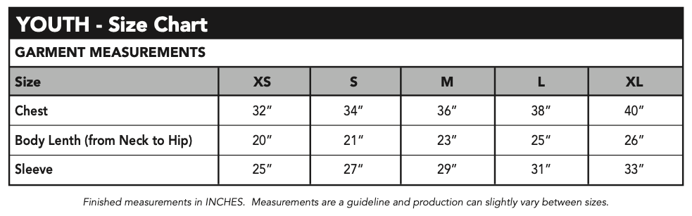 - YOUTH sizing