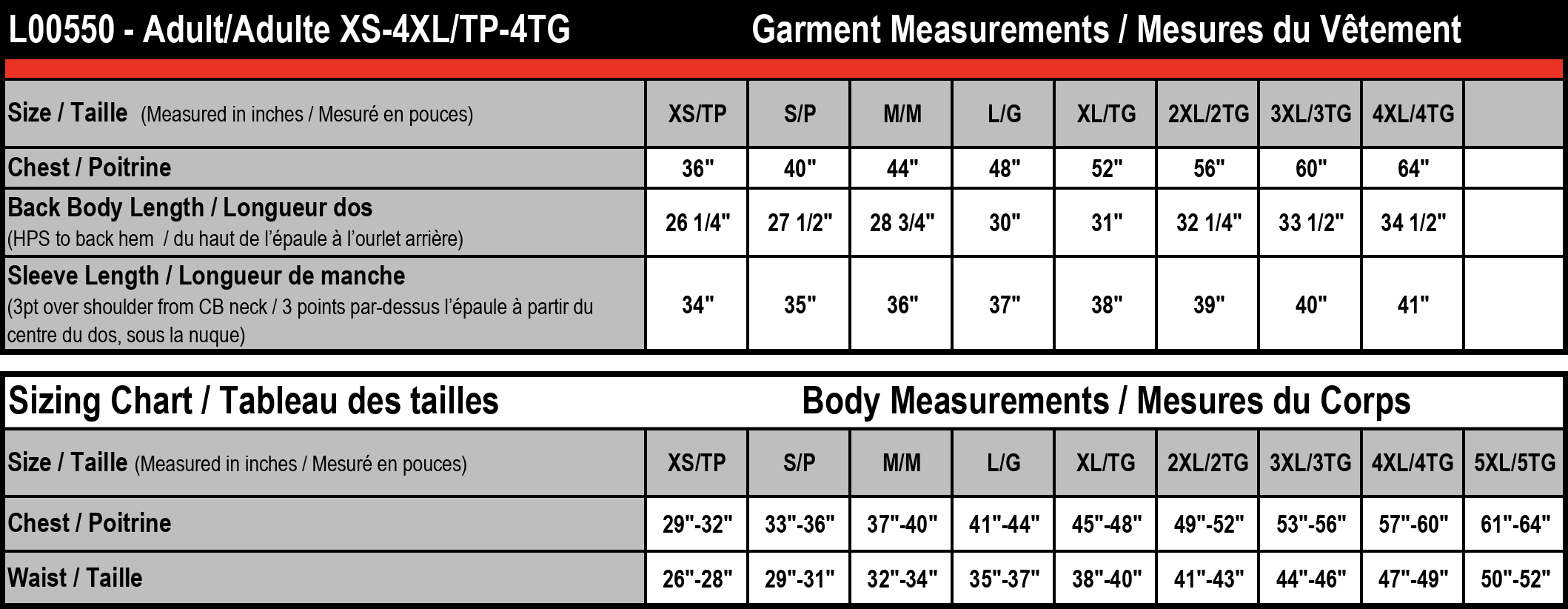 | Chest | 29-32 | 33-36 | 37-40 | 41-44 | 45-48 | 49-52 | 53-56 | 57-60 |