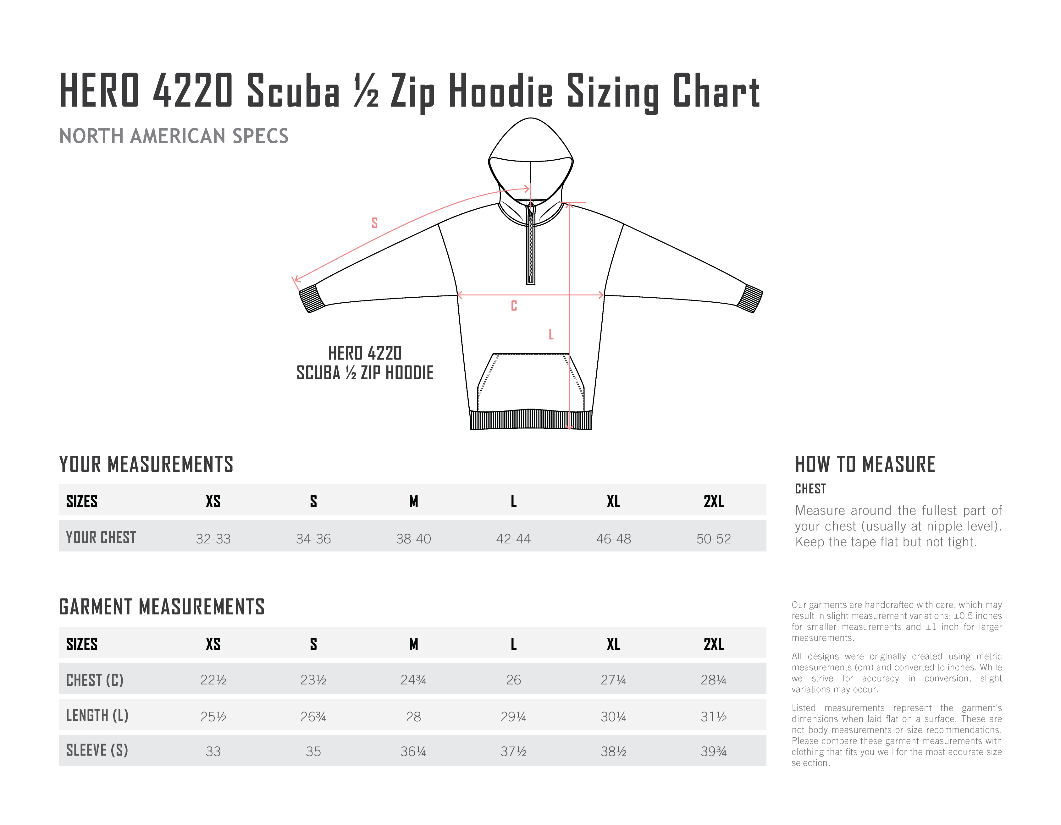 | Chest (C) | 22.5 in | 23.5 in | 24.75 in | 26 in | 27.25 in | 28.25 in |